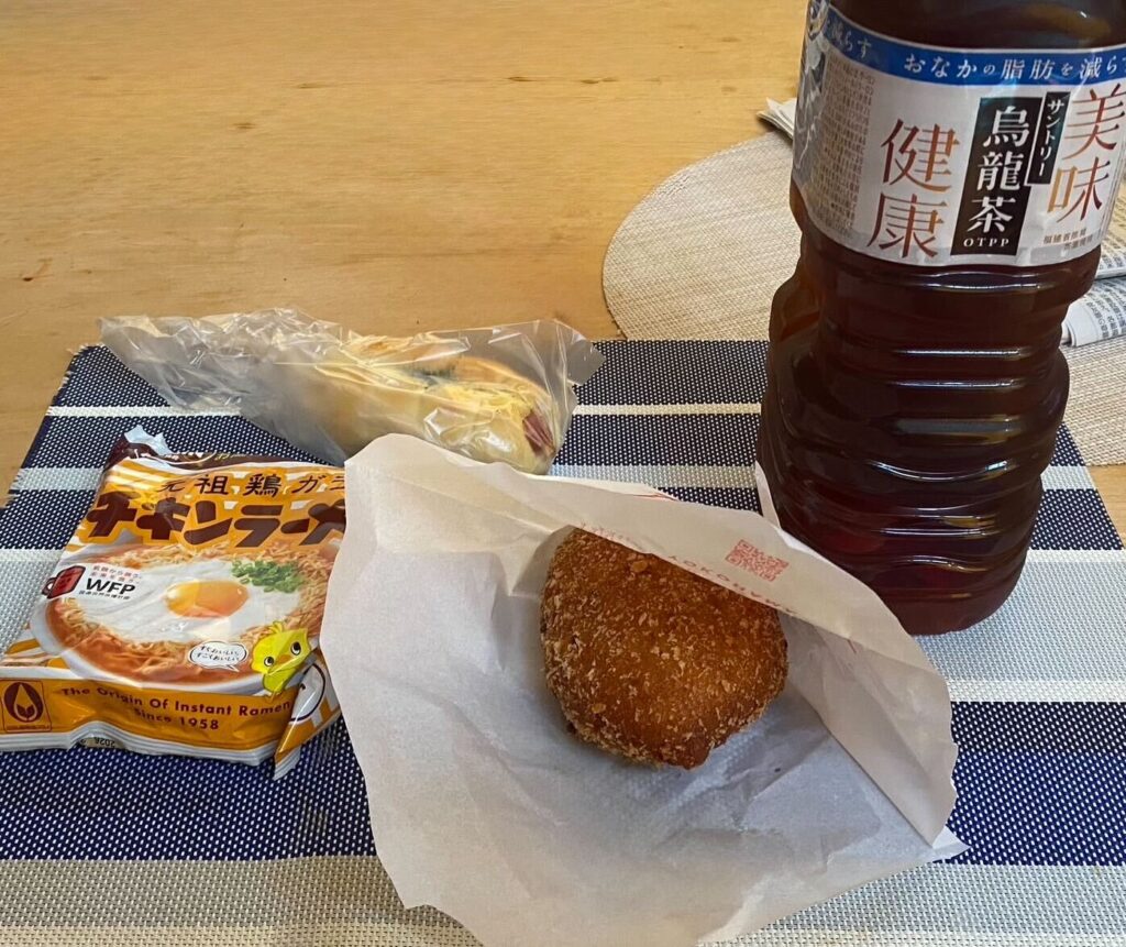 ちなみに、先日のお昼ご飯はカレーパンにフランクロール、そしてチキンラーメン