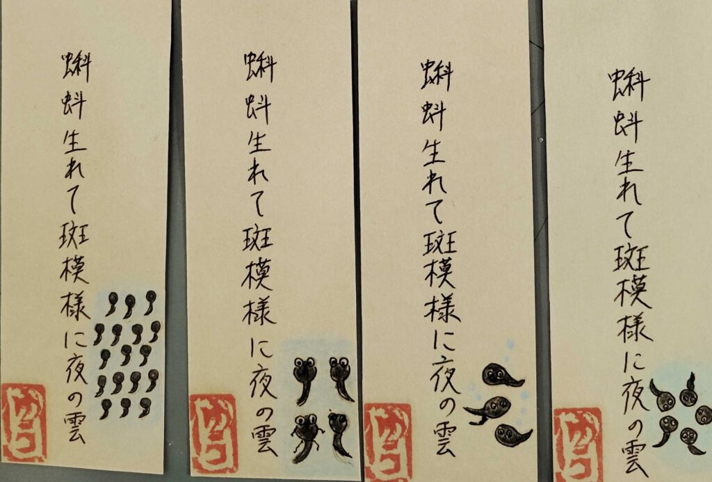 蛙の幼生、「おたまじゃくし」。俳句では「蝌蚪」と詠む事が多い。晩春の季語。